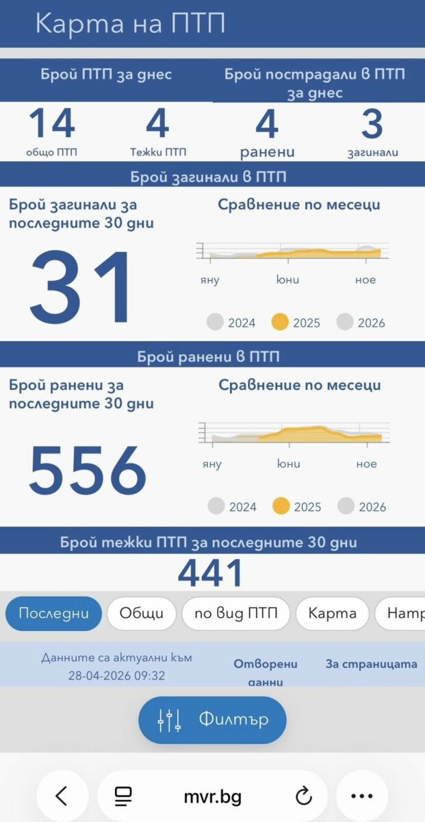 „За последните 30 дни има 31 загинали. 556 са били ранени. Иначе всички институции отчитат “успех” при овладяването на проблема с пътнотранспортния травматизъм.“