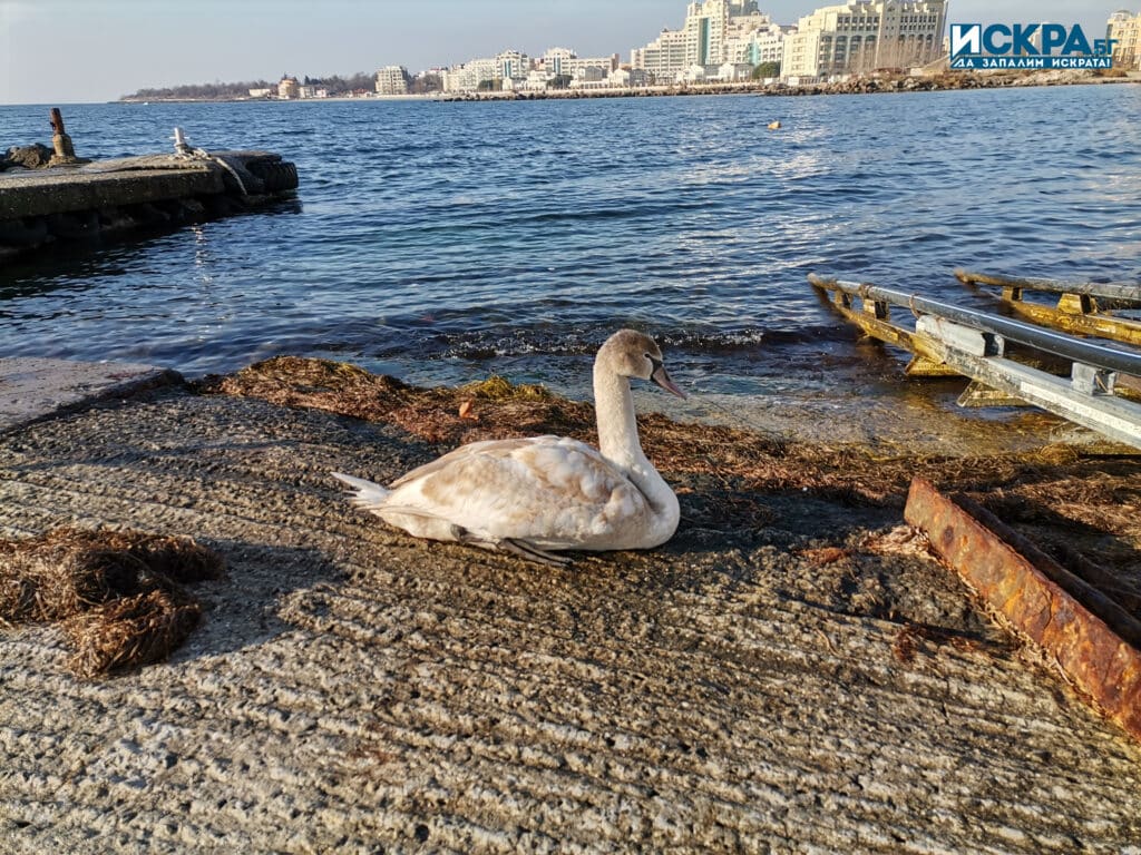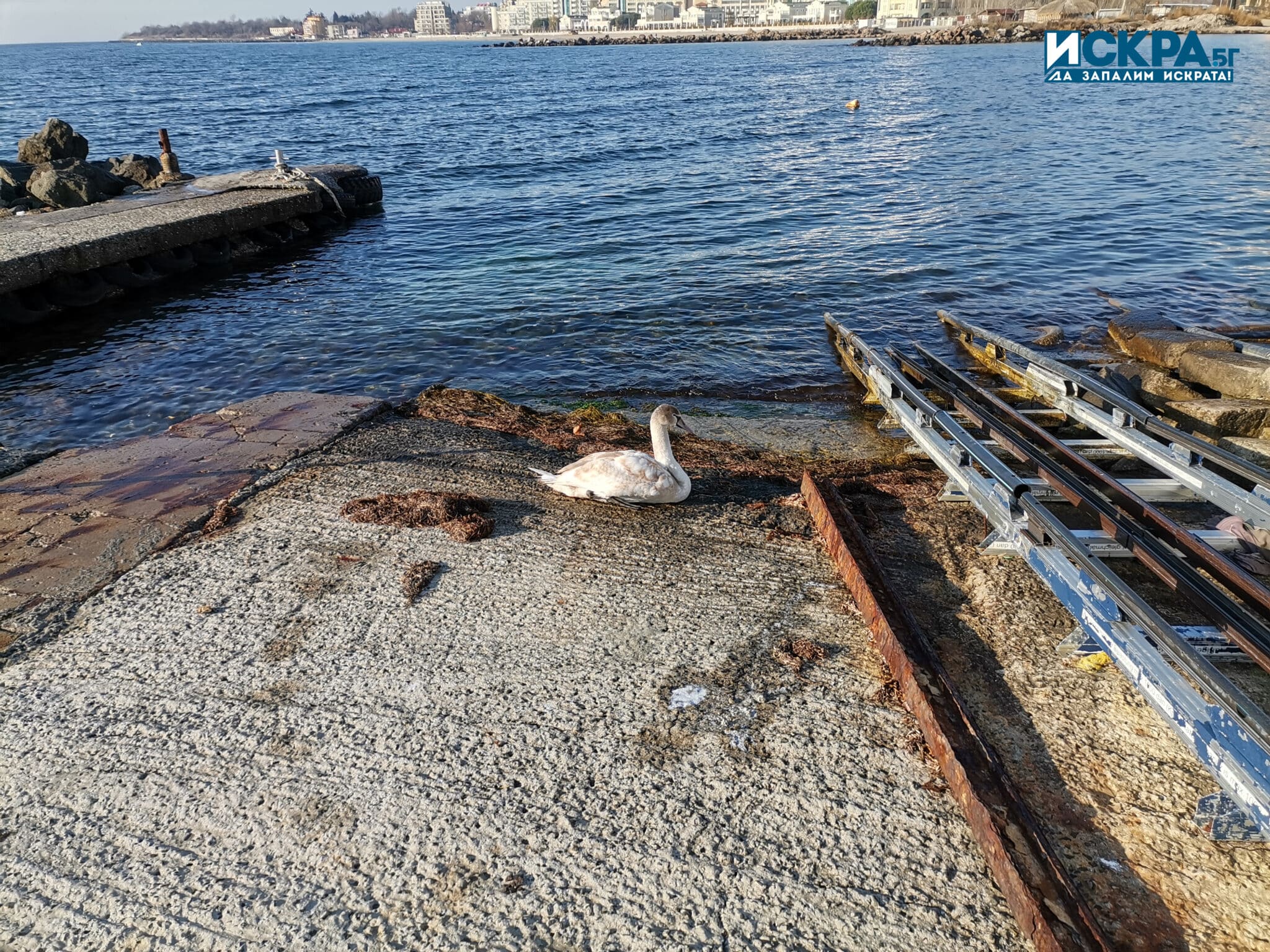 Лебед е починал пред представители на Организация за закрила на българските граждани /ОЗБГ/. Те са забелязали ранената птица на брега на морето в Поморие. Родолюбците веднага са подали сигнал до Регионалната инспекция по околната среда и водите /РИОСВ/-Бургас.