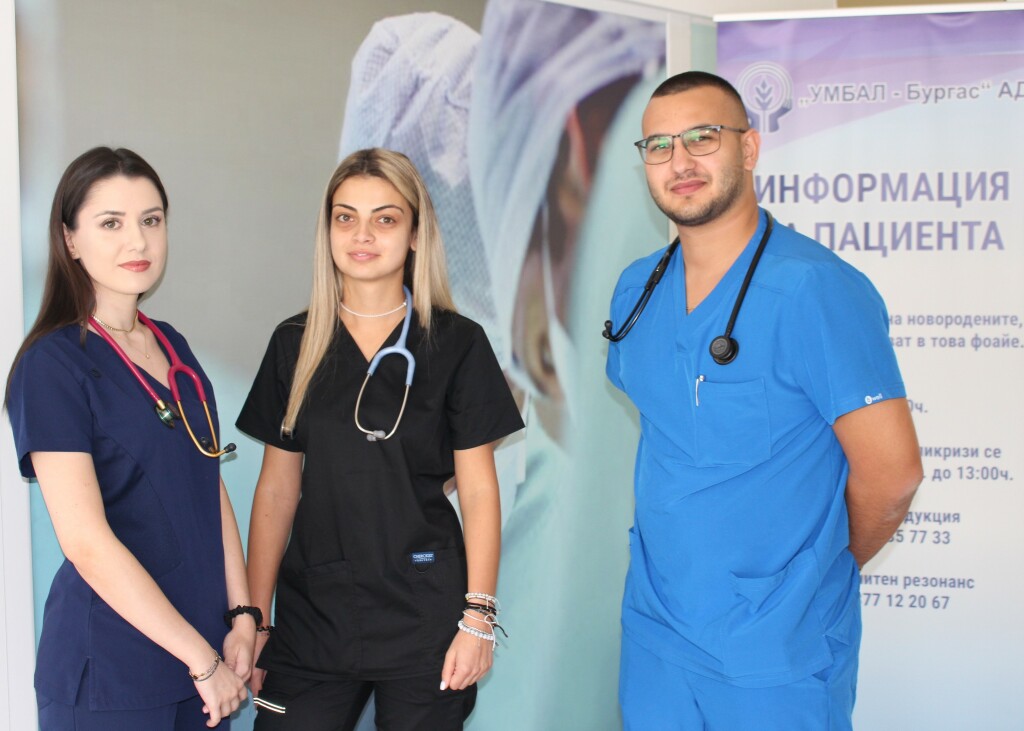 Лекари от първия випуск на Медицинския факултет на Бургаския държавен университет „Проф. д-р Асен Златаров“ вече работят в УМБАЛ Бургас. Веднага след своето дипломиране те избраха най-голямото и най-старо лечебно заведение в Югоизточна България и решението им е ясен знак, че виждат бъдеще за кариерата си тук.