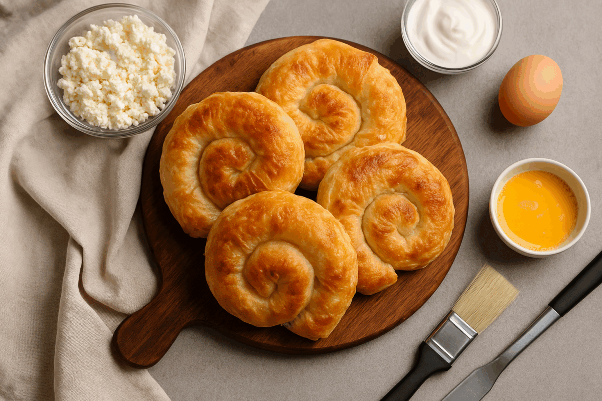 Наредете баничките в намазнена тава. По желание ги намажете с разбито яйце отгоре. Печете в предварително загрята фурна на 180°C за около 20–25 минути – до златисто и пухкаво. Сервирайте топли, с айрян или чаша чай.