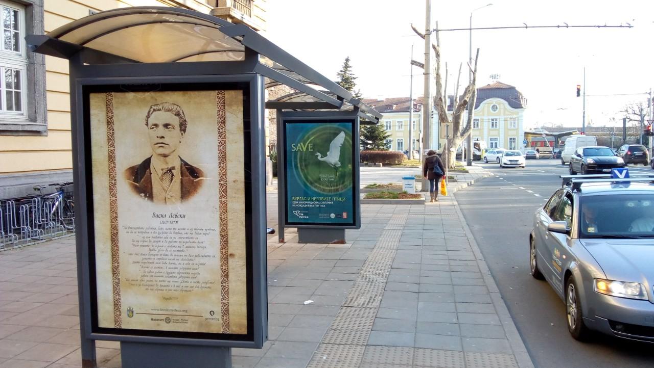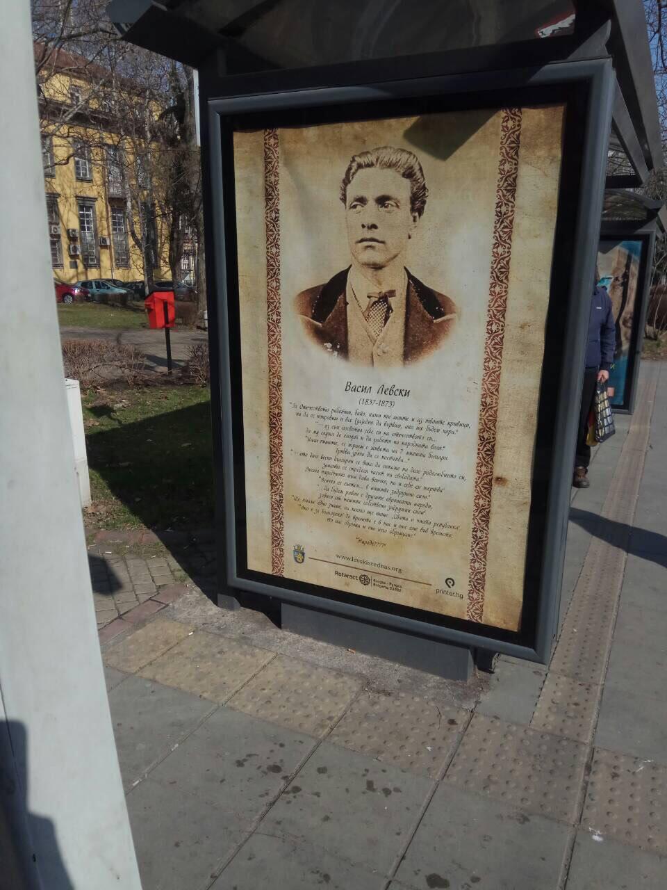 Образът на Левски беше поставен и на няколко автобусни спирки.