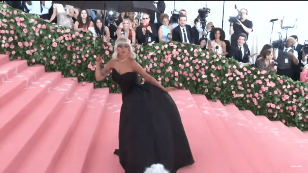 Зашеметяващо влизане на Лейди Гага на благотворителния бал „Мет Гала“ в Ню Йорк. Тя е била облечена в ярко розова рокля, която впоследствие хвърлила на червения килим, за да разкрие три други тоалета под нея, включително бельо. Така суперзвездата интерпретира вечерната тема „Бележки за модата“, предаде агенция „Ройтерс“.