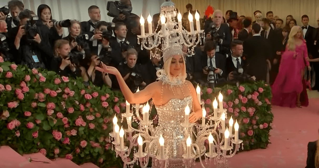 Певицата Кати Пери отишла облечена като полилей. Дори носела един на главата си. „Обичам да съм под светлините и очевидно съм светлината“, коментирала тя своя 40-килограмов костюм на „Москино“.