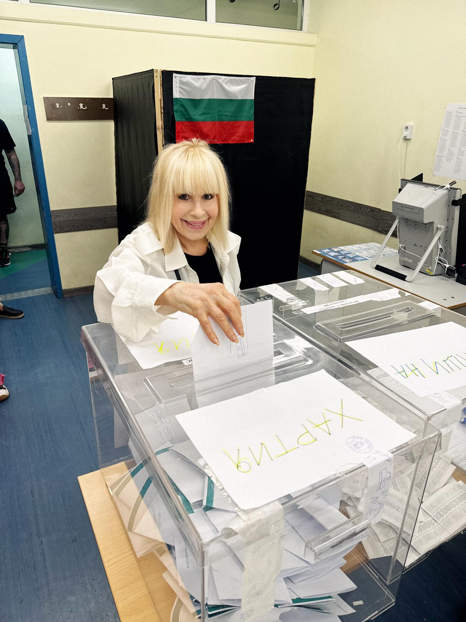 „Благодаря на членовете на 32 СИК в НМУ “Проф. Любомир Пипков” за уважението и отношението!“, написа певицата.