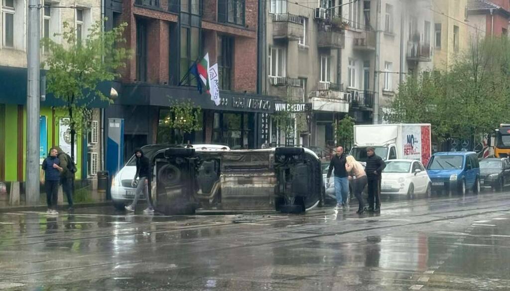 Линейка се е обърнала на едно от ключовите кръстовища в София – при пресечката на булевардите „Сливница“ и „Христо Ботев“. Инцидентът е довел до блокиране на движението в района.