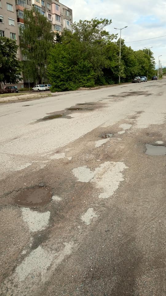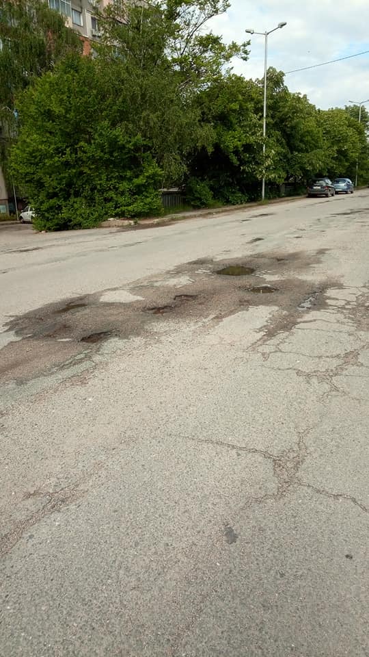 На снимките се виждат множество „кратери“. Буквално няма здрав участък. Те са сериозна предпоставка за катастрофа и разбиват автомобилите. Ремонтът е още по-наложащ, защото по него минава и линия на градския транспорт.