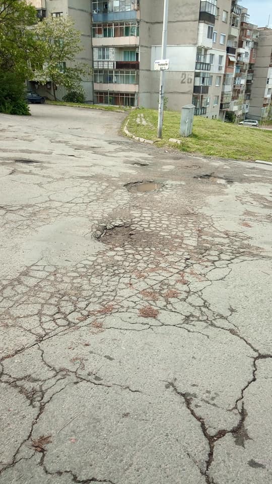 „Лунен пейзаж“ – така изглежда улицата пред блок 26 и 27 в казанлъшкия квартал „Изток“. Кадри на пътя са разпространени в социалната мрежа „Фейсбук“ от Стела Гюрова.