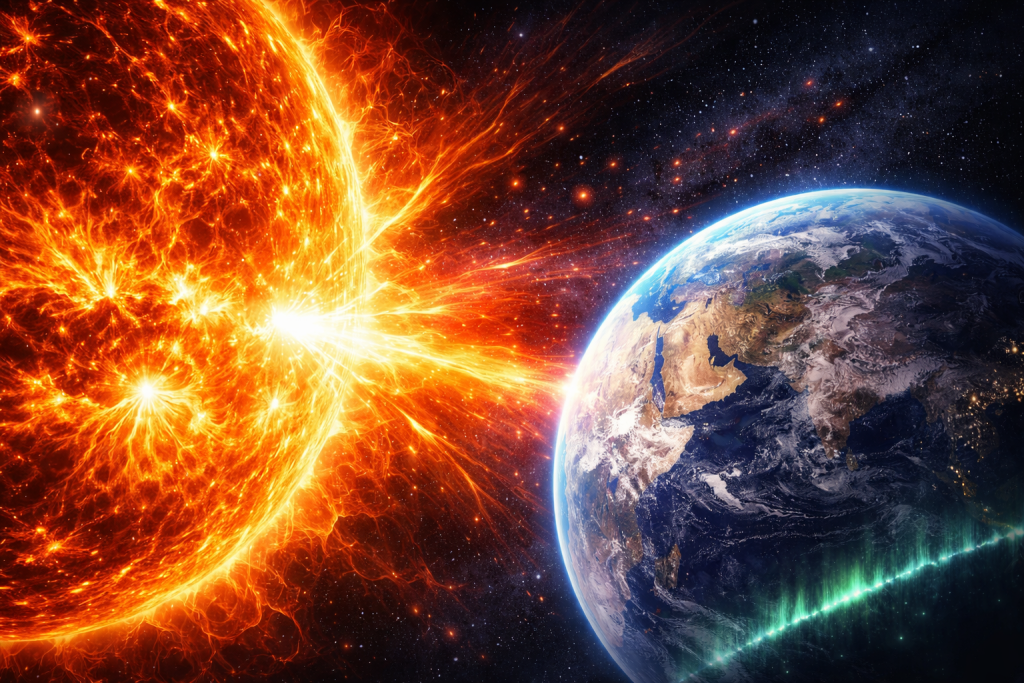 На 25 януари 2026 г. се очаква повишен риск от „радиосмущения“ (R-категория), докато геомагнитна буря (G-категория) не се прогнозира за самия ден, показва официалната 3-дневна прогноза на NOAA/NWS Space Weather Prediction Center (SWPC), издадена на 23 януари 2026 г. в 12:30 UTC.