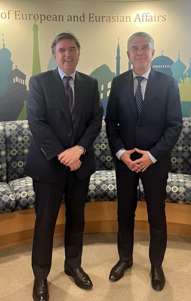 В последния ден от своето посещение във Вашингтон енергийният министър Владимир Малинов проведе ключови срещи в Държавния департамент на САЩ. Въпреки изключително натоварената програма на посланик Джеймс О’Брайън, помощник-държавен секретар по европейските и евразийските въпроси в Държавния департамент на САЩ, той се срещна с министър Малинов.