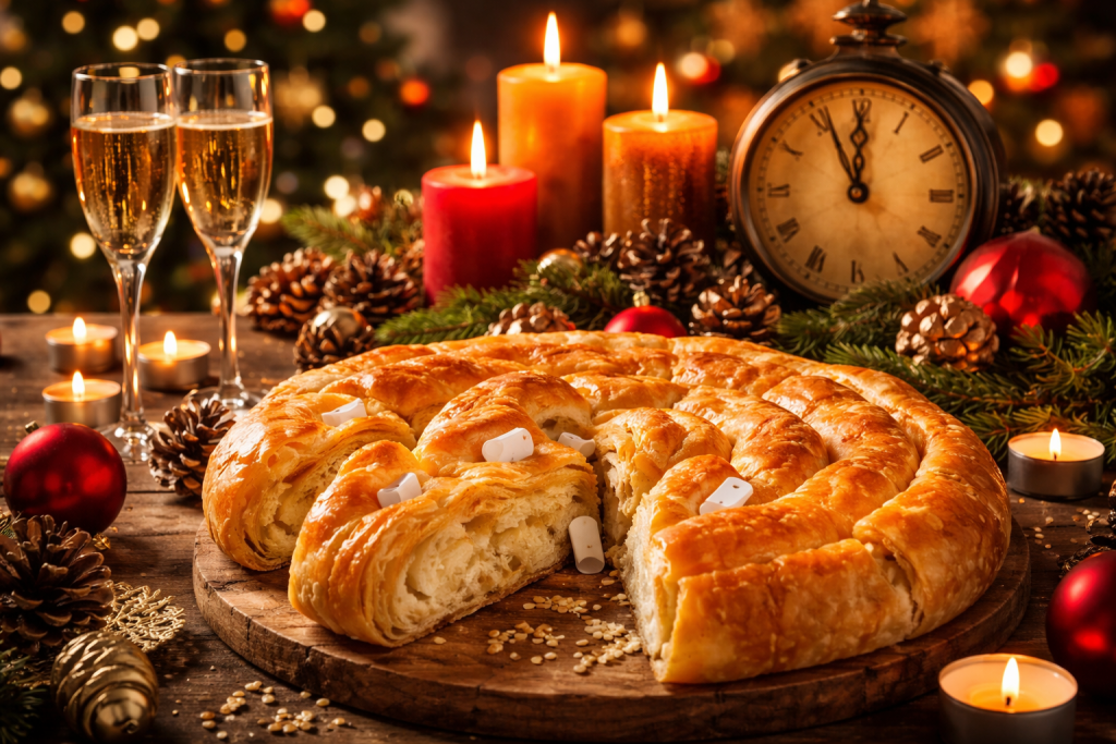 2. Новогодишната трапеза – „вкусът“ на вечерта – Тъй като 31 декември е Нова година, масово се съчетава имен ден + новогодишна вечеря. Един от най-разпознаваемите обичаи е баницата с късмети – символично „наричане“ за здраве, любов, път, успех.
