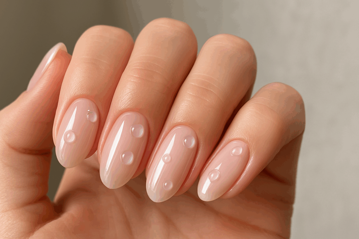 Техниката наподобява капки вода, застинали върху повърхността на нокътя – сякаш дъжд току-що е минал. Използва се прозрачен гел или специален 3D топ, който се нанася локално и се втвърдява за обем. Резултатът е естествен и футуристичен маникюр, който придава усещане за свежест, чистота и лукс.
