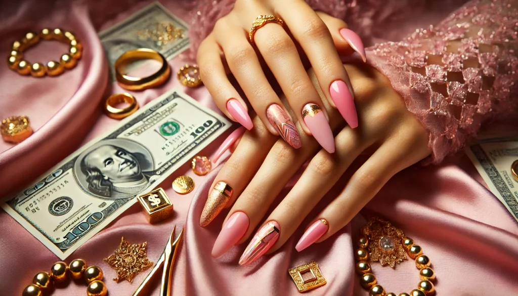 3. Розово със златни акценти – Златото е символ на богатство, а комбинирано с розово, създава луксозна визия, която привлича успеха. Добавете златни линии, точки или дори малки кристали за допълнителен ефект.