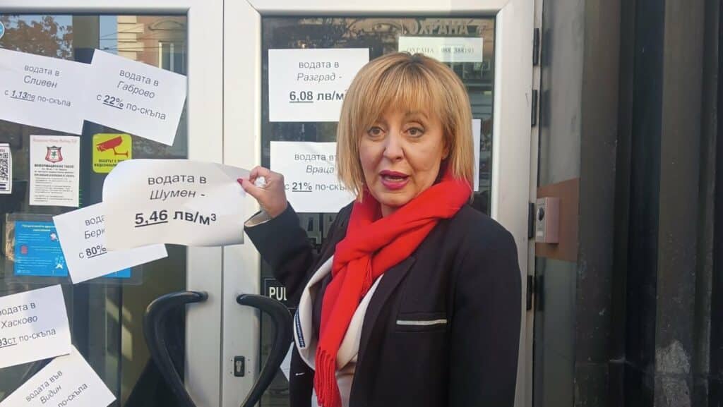 Това отчете председателят на „Изправи се.БГ“ Мая Манолова по време на акция на гражданската платформа пред Комисията за енергийно и водно регулиране /КЕВР/ преди общественото обсъждане за поскъпване на водата от 1 януари догодина. От сдружението облепиха сградата на контролния орган със стикери, предупреждаващи какви ще са цените в различните ВиК-та от 2024 г.