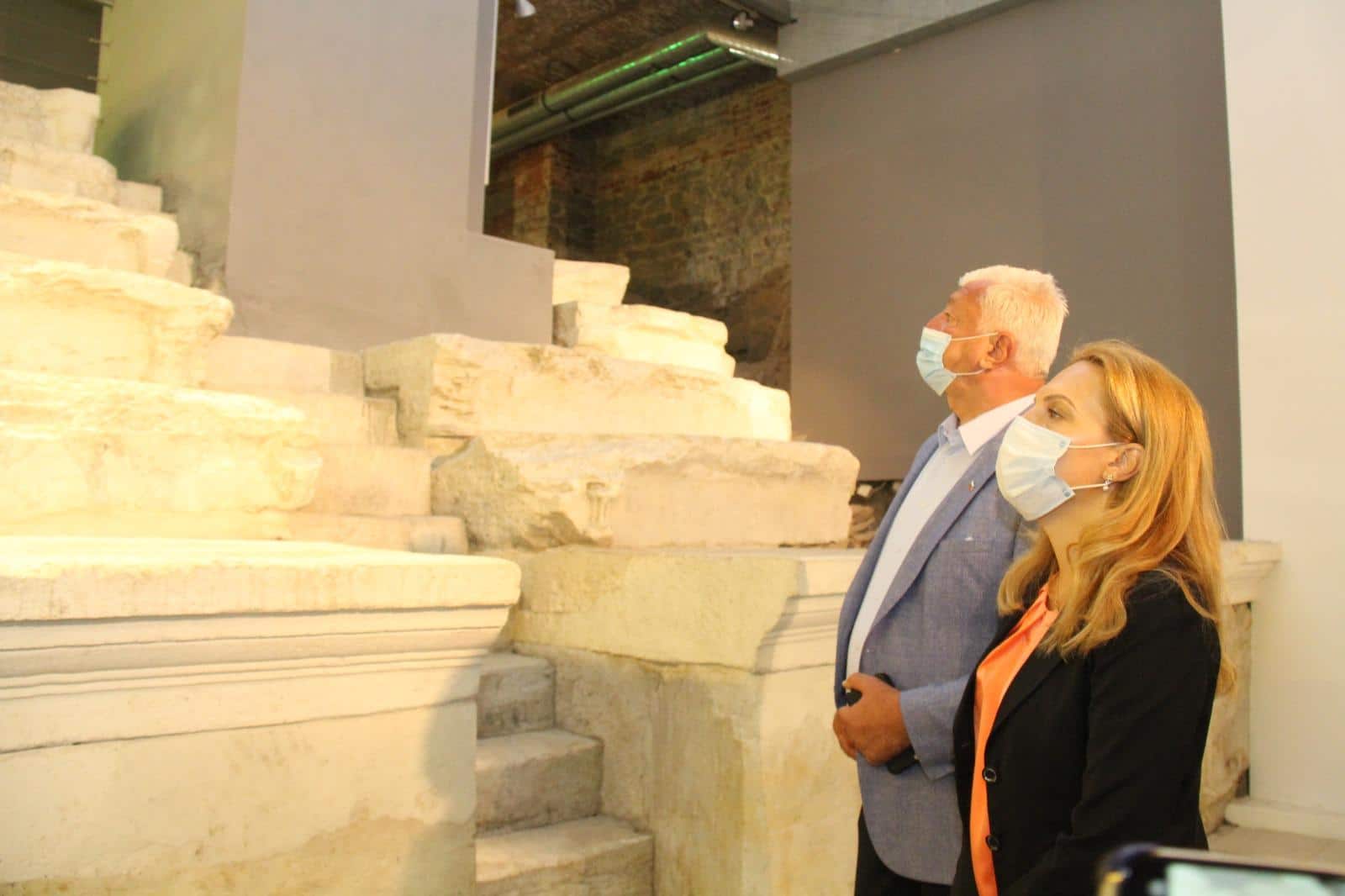 Вицепремиерът и министър на туризма Марияна Николова разгледа и централната трибуна на Римския стадион в Пловдив. Тази част от разкопките в центъра на града все още е затворена за гражданите, тъй като се намира в частен терен и достъпът за външни лица е ограничен.