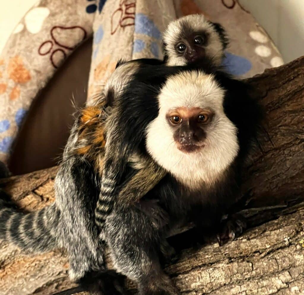 Амина и Темпо са сред най-новите обитатели на зоопарка в Бургас. Те са представители на вида мармозетки на Жофроа, едни от най-дребните маймуни на планетата. Всяка от тях тежи около 400 грама. Козината им е гъста и мека, в основата си кафява, а отгоре тъмносива до черна. На ушите си имат кичури от косми, подобно на коалите. В областта на лицето и част от врата козината е бяла. Те са игриви, закачливи и определено са едни от любимите примати на посетителите.