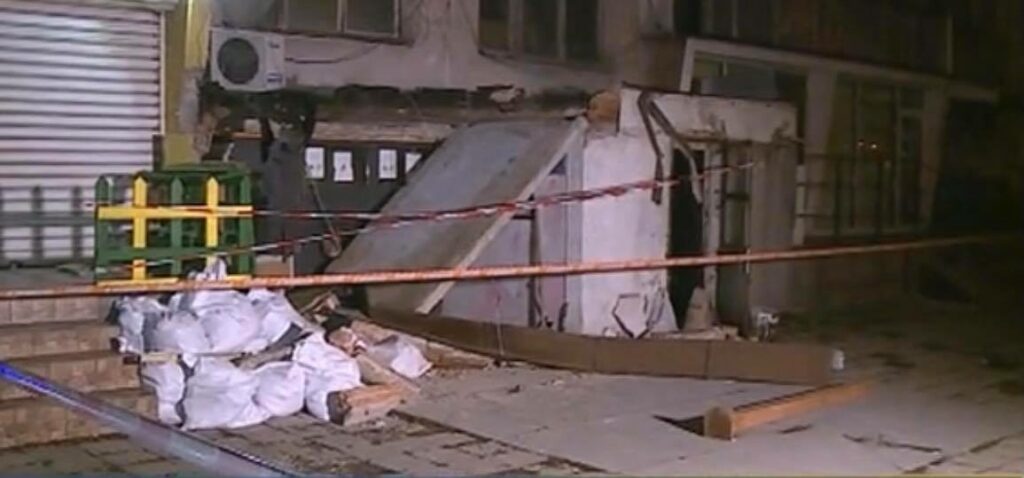 Живеещи в блока предполагат, че е била съборена подпорна стена. Плочата е абсолютно здрава, но въпреки това е паднала.