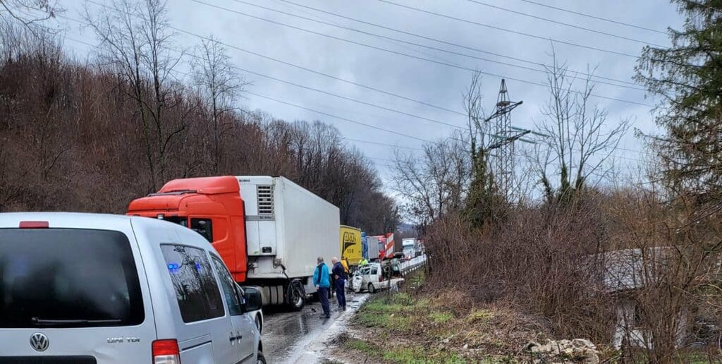 В момента и в двете посоки са се образували колони от коли. На мястото има Пожарна и полиция.