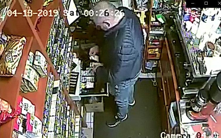 Според записа служителят първо изпил няколкостотин грама алкохол, а след това бръкнал в касата, взел част от оборота и си тръгнал.