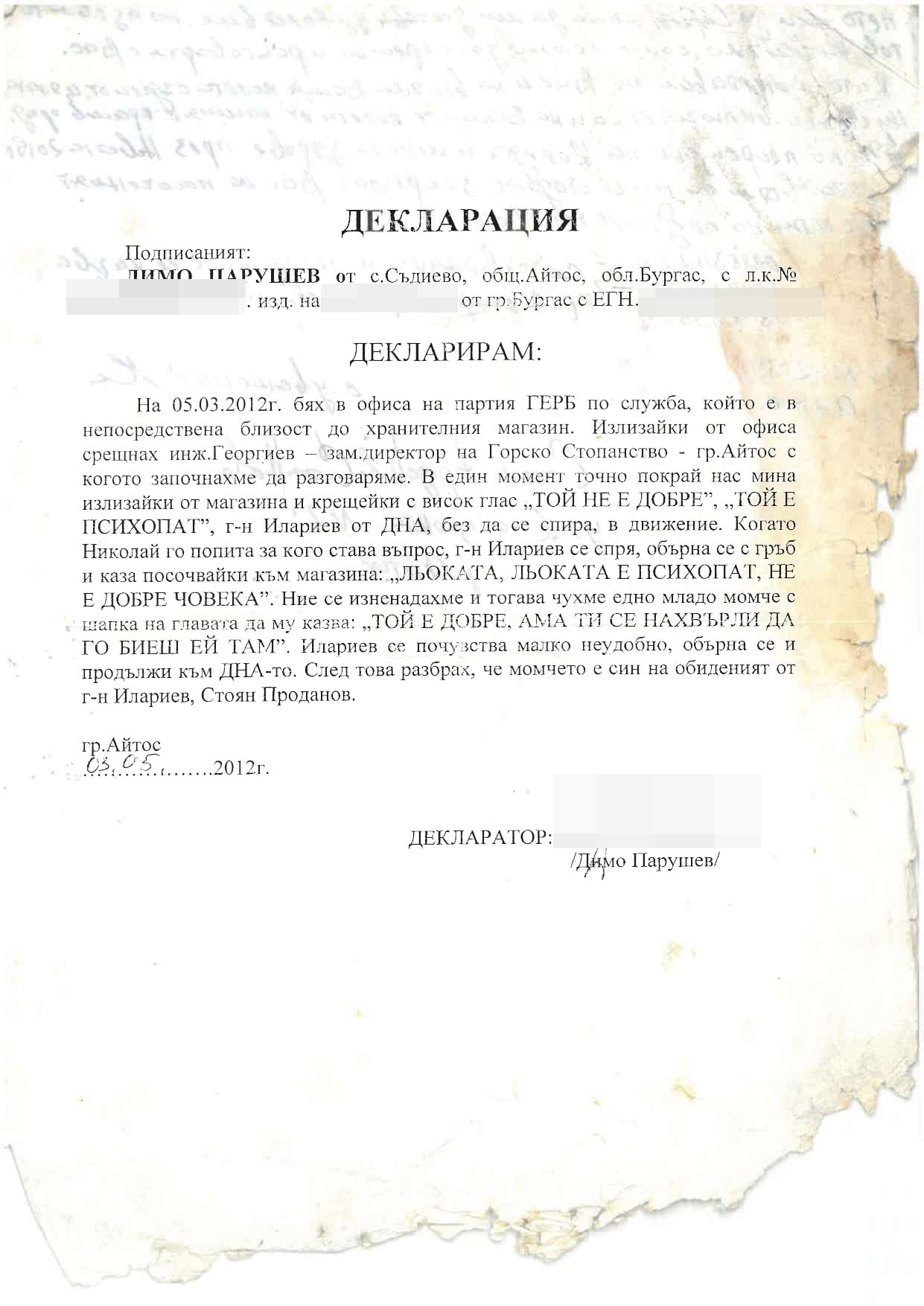 Самият потърпевш е крайно възмутен от действията на Иларев. Това е човек, който заема публична длъжност и поведението му би трябвало да бъде безупречно като такъв. В същото време той е клеветил, заплашвал и обиждал свой служител, който дори не е успял да се защити и да изчисти името си.