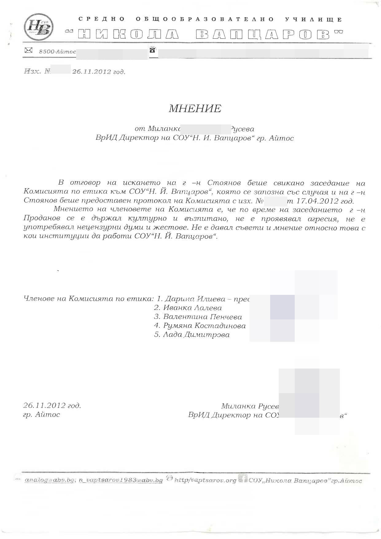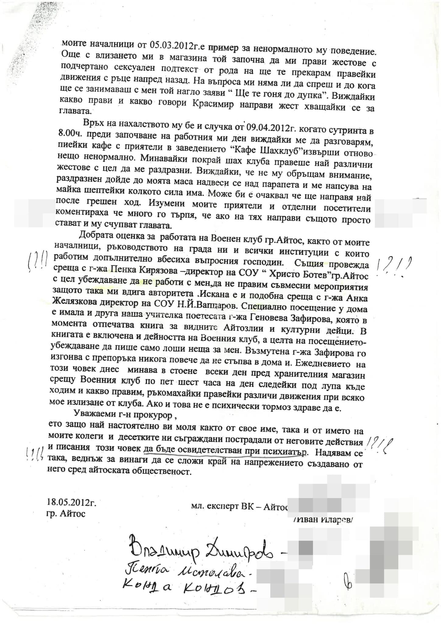 В тази жалба до прокуратурата пише, че още, че Стоянов е ходил при всички – директори на училища, началника на полицията и кмета на общината, за да ги убеждава да не работят повече с Иларев. Искра.бг разполага с документи, в които категорично тези твърдения се отхвърлят.