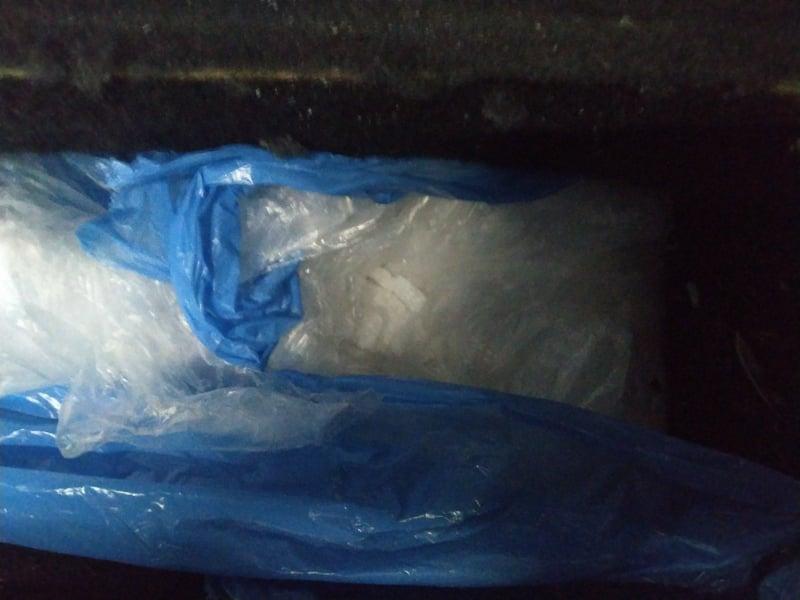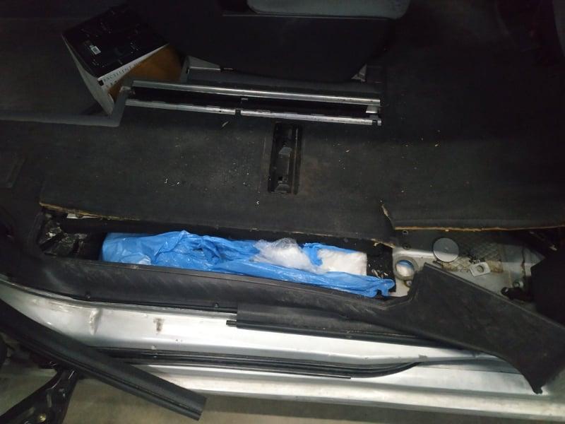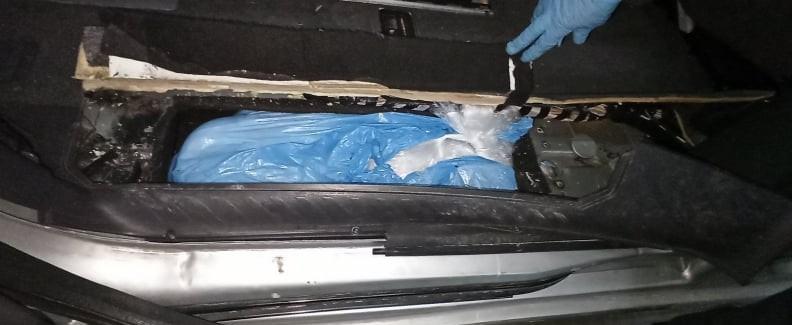 Кучето е реагирало положително на наркотично вещество и е локализирало зона около задната дясна седалка на автомобила. След демонтиране на задната седалка са били намерени укрити в кухина 13 пакета, съдържащи бяло кристалообразно вещество – амфетамин.