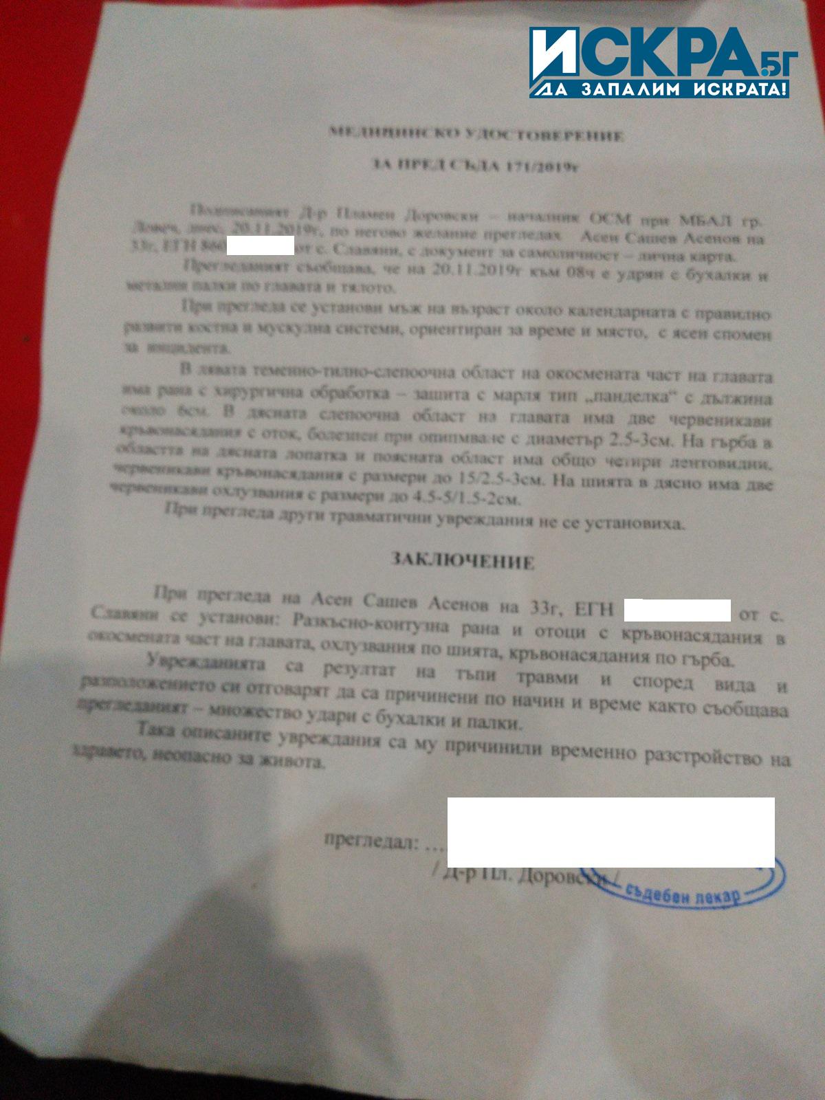 По думите му братовчед му Асен Асенов, който му е и съсед, отишъл да му помогне, но също бил нападнат. И имал медицинско удостоверение, с което да го докаже.