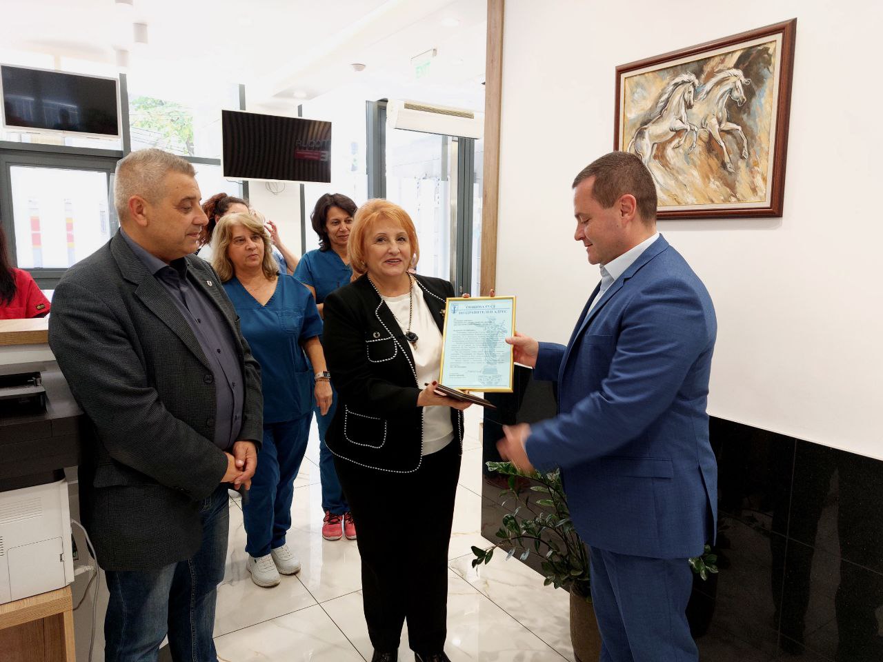 Кметът на Община Русе Пенчо Милков и неговият заместник Димитър Недев уважиха рождения ден на Самостоятелна медико-диагностична лаборатория „Здраве“, която през 2024 г. навършва 25 години от своето основаване.