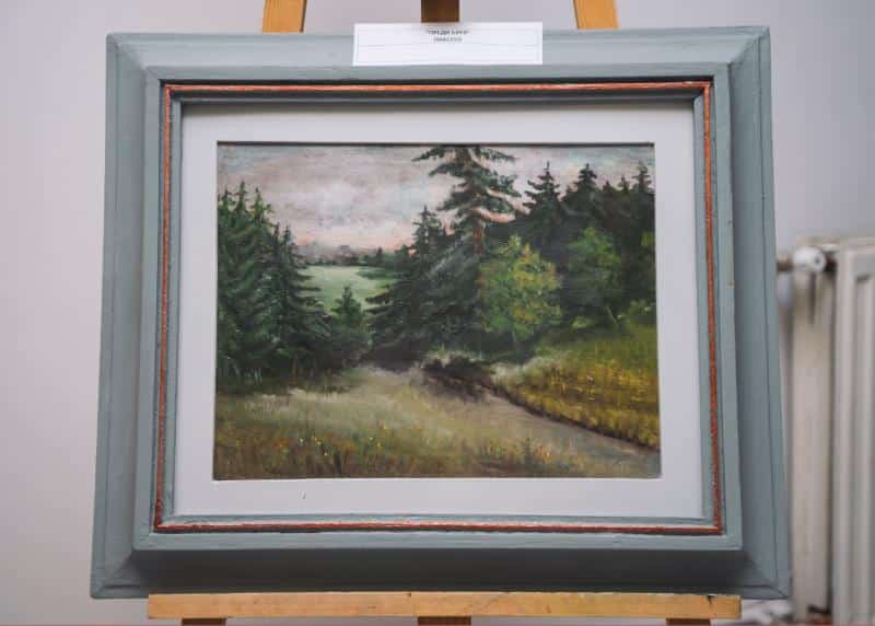 Започнах с един морски пейзаж – беше гола картина, цялата в мухъл. Почистих я и се откри една великолепна творба, която просто ми даде криле. След това посегнах върху „най-тежката“ от тези картини – изглед от алпийски манастир. Тази картина беше доста повредена, буквално скъсана. Както се шегувам, може би е била нахлупена от ревнива жена върху главата на неверен съпруг… С нея си играх повече от месец, както отпред, така и отзад, и се получи една прекрасна творба. Обърнах й особено внимание, защото ми е набор – рисувана е през 1958 г.