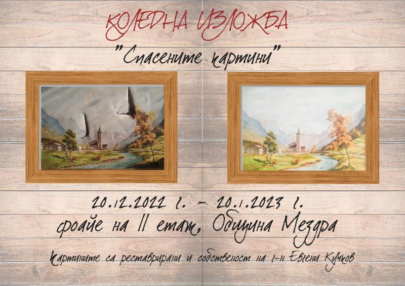 Изложбата „Спасените картини“ може да бъде разгледана всеки делничен ден до 20 януари във фоайето на втория етаж в сградата на Община Мездра.