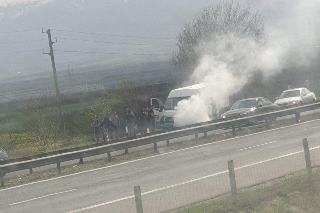 Микробус се е подпалил на автомагистрала „Хемус“. За това сигнализира в социалната мрежа Facebook очевидец.