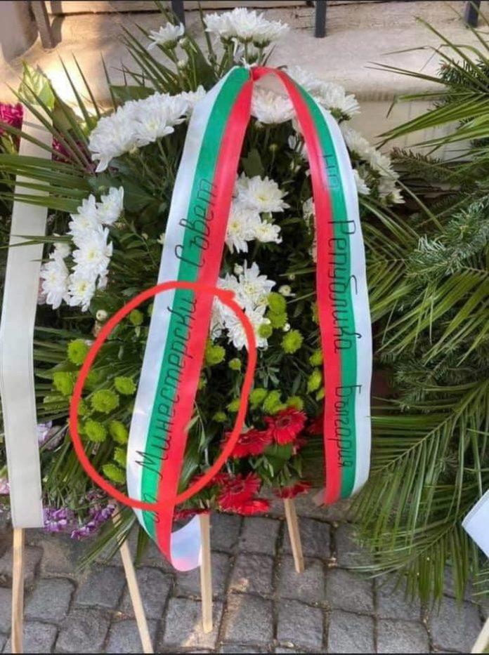 Правописна грешка на надпис, поставен на венец от Министерски съвет. Интересен е въпросът дали от Министерски съвет са видели и одобрили венеца. И съответно дали ще има санкционирани за гафа.
