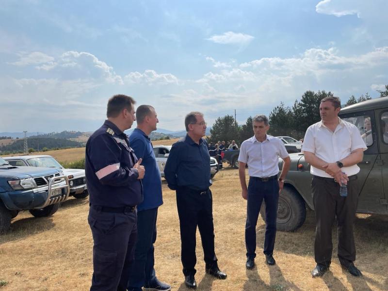 Земеделският министър се запозна с предприетите действия по овладяването на огъня, както и с екипировката на хората. На терена той видя и специализираната техника, която се използва при гасене на пожари в гората. В момента се прокопава просека, с цел ограничаване разпространението на низовия пожар в местността, разпрострял се на площ от близо 1 000 дка.