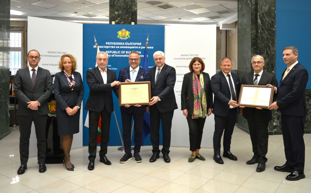 Министърът на иновациите и растежа доц. Росен Карадимов връчи сертификат за приоритетен инвестиционен проект „Завод за производство на соларни панели и клетки“ на „Смарт Солар Технолоджис“ АД.