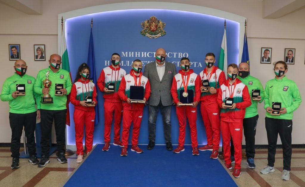 Министърът на младежта и спорта Красен Кралев удостои с почетни плакети на ММС медалистите от Европейското първенство по бокс за младежи и девойки. От провелия се шампионат в Будва, Черна гора българските състезатели успяха да завоюват общо 6 медала – 2 златни, 1 сребърен и 3 бронзови.