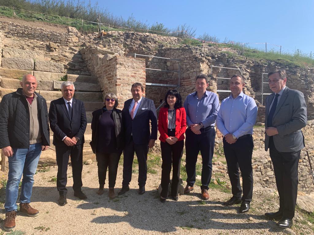 Заедно с него обекта посетиха зам.-министрите на регионалното развитие и благоустройството Николай Шушков и на финансите Александър Свраков, директорът на Агенция „Митници“ Павел Геренски, кметът на Петрич Димитър Бръчков, председателят на Общински съвет – Петрич Светла Данаилова, директорът на историческия музей в града Методи Бисерков, археологът от Исторически музей в Сандански Светла Петрова, както и Асен Гьошев – търговски директор на „Пи Ес Пи“ ЕАД, което извършва реставрацията на античния град.