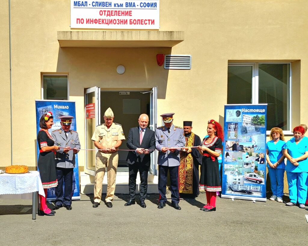 Военният министър и началниците на ВМА и МБАЛ-Сливен откриха реновираната сграда на отделението по Инфекциозни болести в МБАЛ-Сливен.