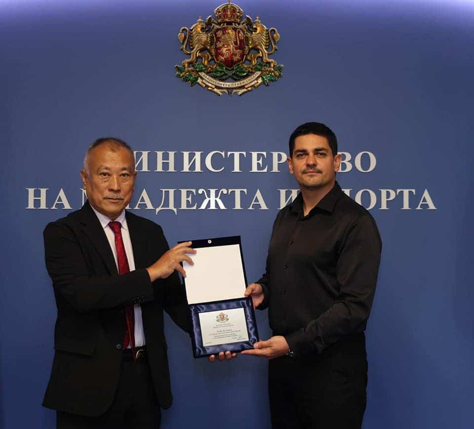 В знак на уважение министърът връчи почетен плакет на спортното министерство на Кей Изава.