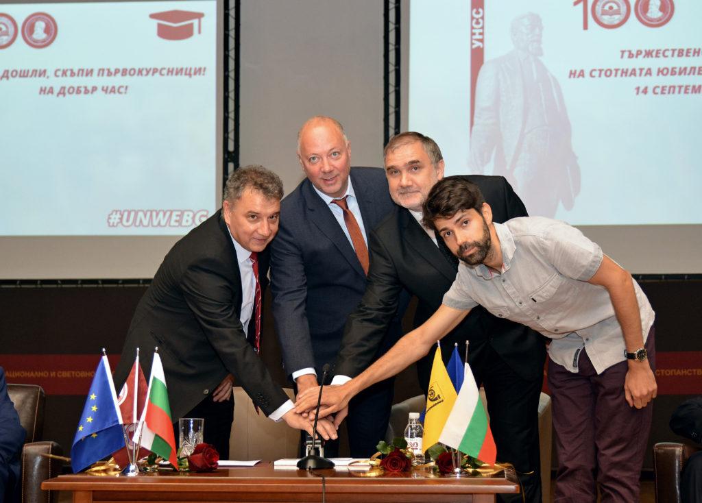 Министър Росен Желязков и ректорът на висшето училище проф. Димитър Димитров валидираха специално пощенско-филателно издание „100 години УНСС“.