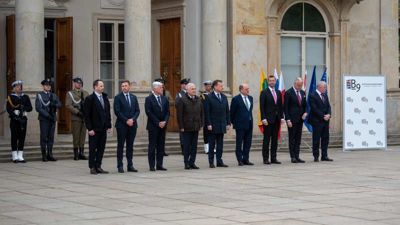 Б-9 е многостранен формат за консултации и диалог по въпроси на сигурността, в който участват 9 страни-членки от Източния фланг на НАТО – България, Естония, Латвия, Литва, Полша, Румъния, Словакия, Унгария и Чехия. Във форума във Варшава днес участваха още представители от НАТО и държавният секретар по отбраната на Великобритания Бен Уолъс.