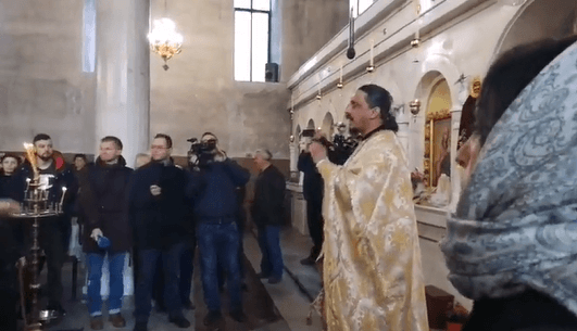 Тази сутрин започна служба по време, на която трябваше да бъде въдворен новият наместник отец Павел. По време на служението в храма нахлуха над 50 петричани, започнаха да дърпат и блъскат свещениците и след това всички викаха „Недостоен“.