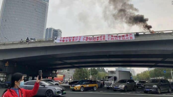 Подобен драматичен протест – и публична критика към правителството – е рядкост в Китай, въпреки че строгата политика на Китай за „нулев COVID“ подхранва нарастващото обществено разочарование.