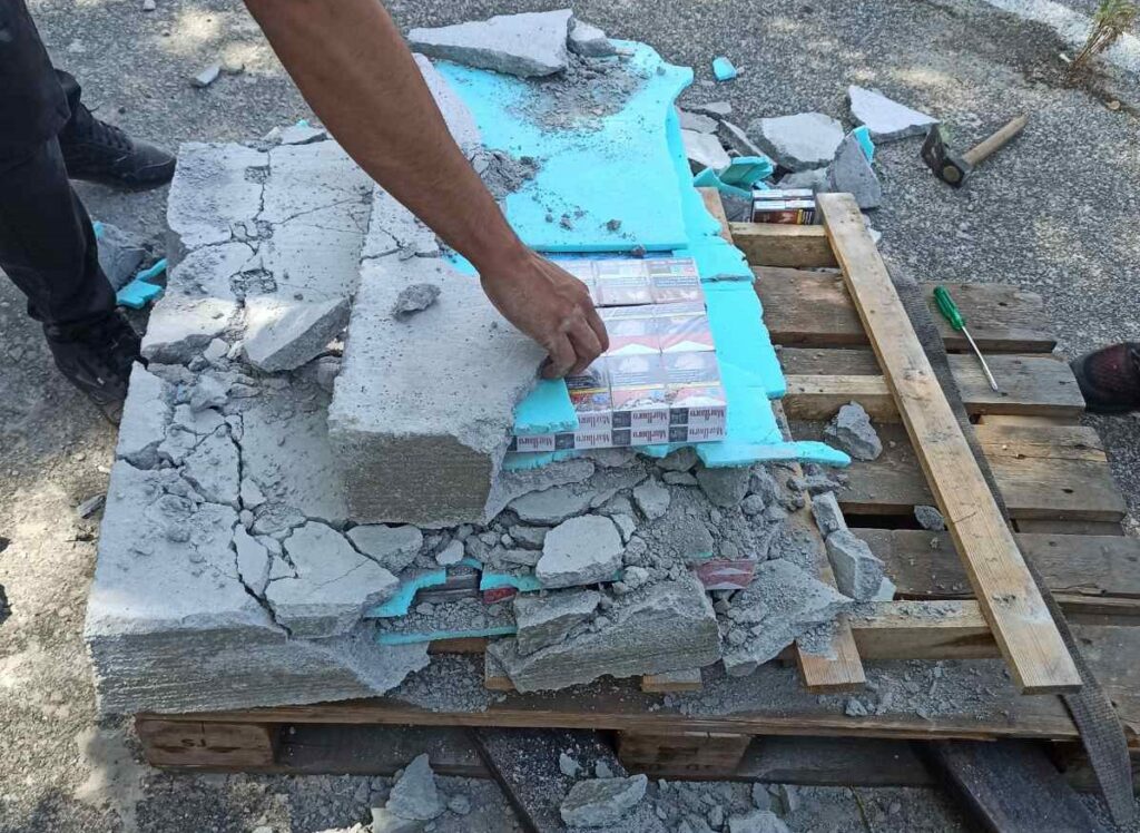 И друг необичаен опит за превоз на цигари с български акцизен бандерол е установен от митническите служители в същия ден. При проверка на автовоз, пътуващ за Германия, митническите инспектори проверяват непридружена пратка – бетонна плоча, за която водачът -български гражданин твърди, че е търговска мостра. Оказва се, че в бетона са отлети 5400 къса /270 кутии/ цигари с български акцизен бандерол.