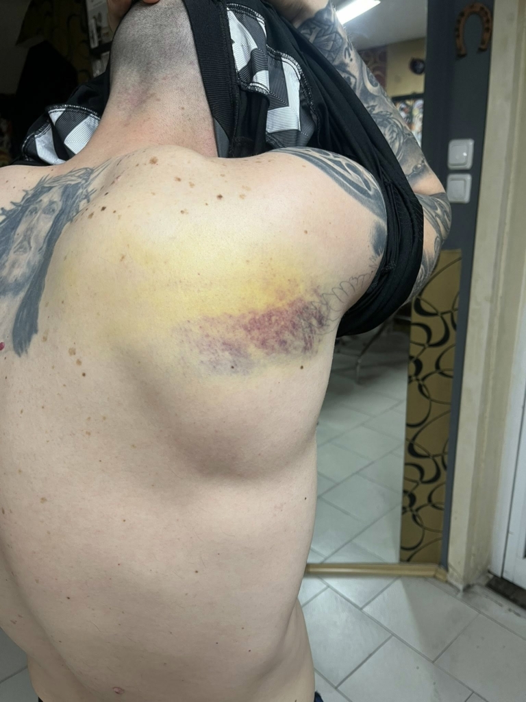„В същия момент агресирали цигани отзад ме удрят с бухалка в главата. И така започна всичко. Максимум 1 минута ме налагаха. Още един или двама с юмруци. Не знам колко бяха. Аз гледах да се предпазя и да избягам от полезрението на хората вътре в заведението, защото там беше синът ми и вижда всичко!“, разказа още Стефан.