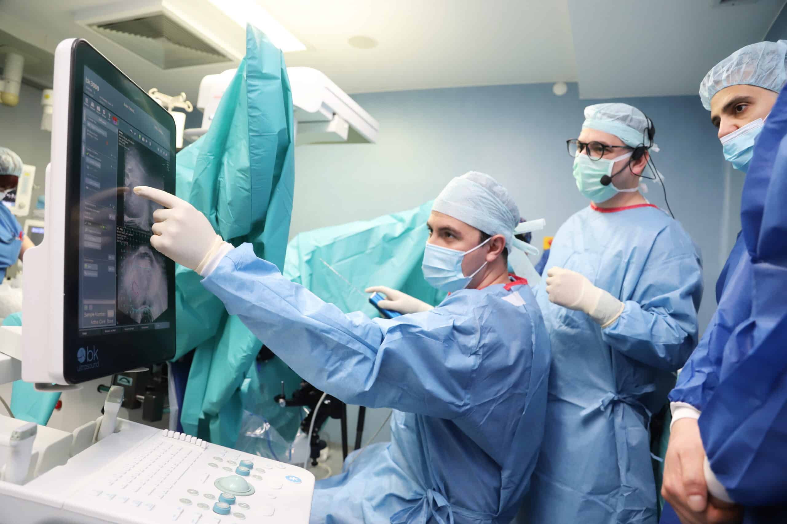 Участниците наблюдаваха на живо от операционната зала извършването на шест МРТ/УЗ fusion биопсии на простата. Те бяха запознати с всички етапи на техниката – от обработката на МРТ образите и подготовка за биопсията, до оперативната техника и спецификите в извършването ѝ.
