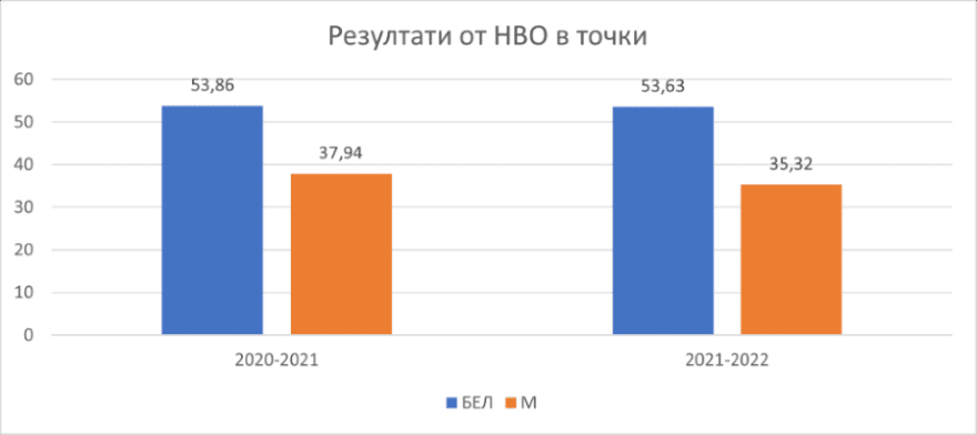 Максималният брой от 100 точки и по двата предмета са постигнали трима ученици – толкова, колкото и през предходната учебна година. В сравнение с 2020-2021 г. обаче е намалял броят на учениците, които имат 0 точки и по двата предмета. Сега те са 33 ученици, а преди година са били 44.