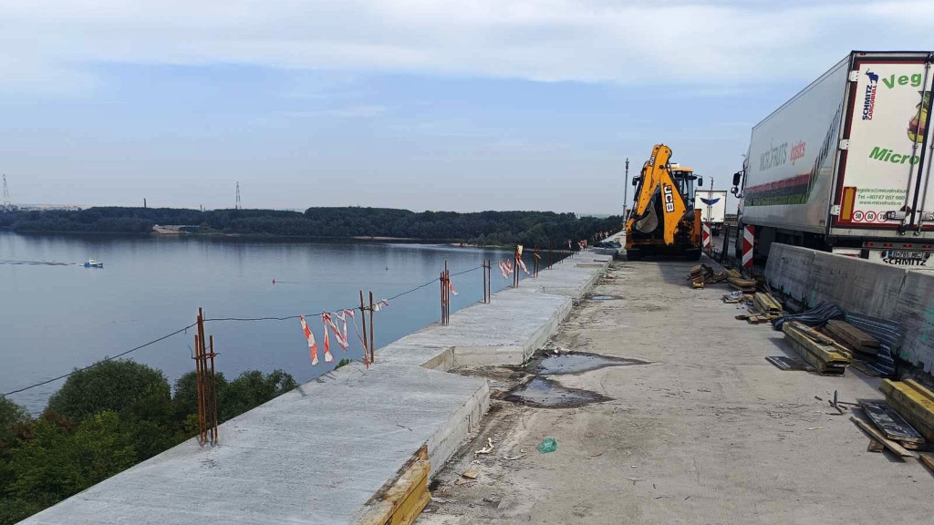 Монтират се реставрираните стълбове при основния ремонт на Дунав мост при Русе. В периода от 30 юли до 5 август са поставени 4 от 8-те стълба на съоръжението в затворената 320-метрова отсечка в посока България. През изминалата седмица завърши полагането на хидроизолация на тротоарния блок в цялата затворена за строително-монтажни работи отсечка. Монтирана е армировката и е положен бетонът на целия затворен за ремонт участък.