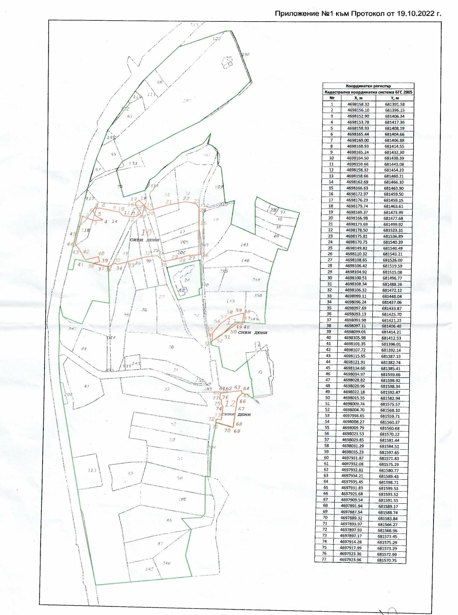 Съгласно Наредбата за създаването и поддържането на специализираните карти и регистри на обектите по чл. 6, ал. 4 и 5 от Закона за устройството на Черноморското крайбрежие, пясъчните дюни се отразяват в специализираните карти, като техните граници се заснемат след посочването им на място и определяне на вида им от ботаник фитоценолог и експерт по брегова геоморфология.
