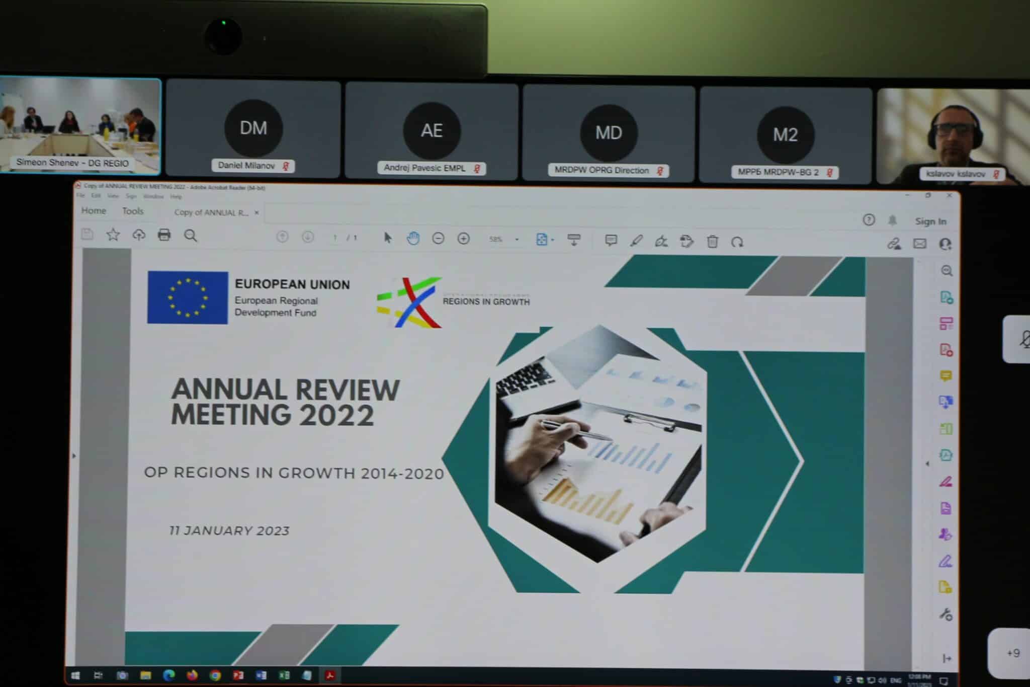 Информацията за изпълнението и напредъка по ОПРР и подготовката на ПРР 2021-2027 г. беше представена по време на Годишната среща с ЕК за обсъждане на изпълнението и напредъка по ОПРР и ПРР 2021-2027 г. Годишната среща с ЕК се провежда в началото на всяка година. Целта й е да бъде прегледан и представен напредъка по ОПРР и ПРР 2021-2027 г. и обсъдена съвместната работа на УО с ЕК през текущата година.