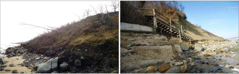 Активните свлачищни процеси започват на около 140 м от края на крайбрежната алея и обхващат цялата носова форма, като свлечените земни маси заедно с дървета и храсти затрупват част от плажната ивица. От свлачищните процеси са разрушени подпорни стени и стълбища, които свързват почивните бази в горната заравнена част на крайбрежния склон и плажната ивица.