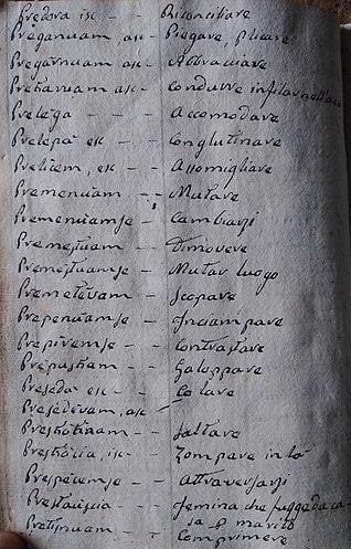 Маурицио е дошъл с първата група капуцини през 1841-ва година в България. Малката ръкописна книжка е речник, служил дълги години като инструмент за комуникация с местните. Създаден е, за да могат мисионерите с българското население. Има и турцизми, сравнително с италианските думи.
